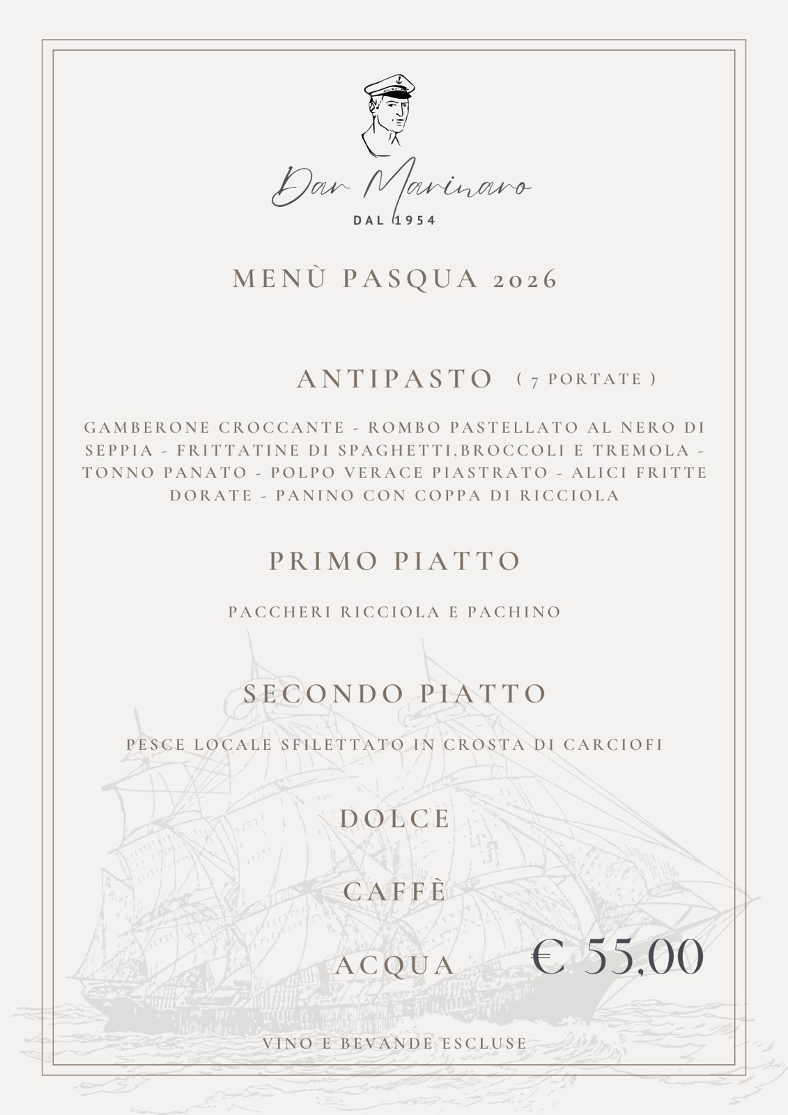 A Pasqua regalati un menù a base di prodotti freschi di prima qualità al Ristorante Dar Marinaro!